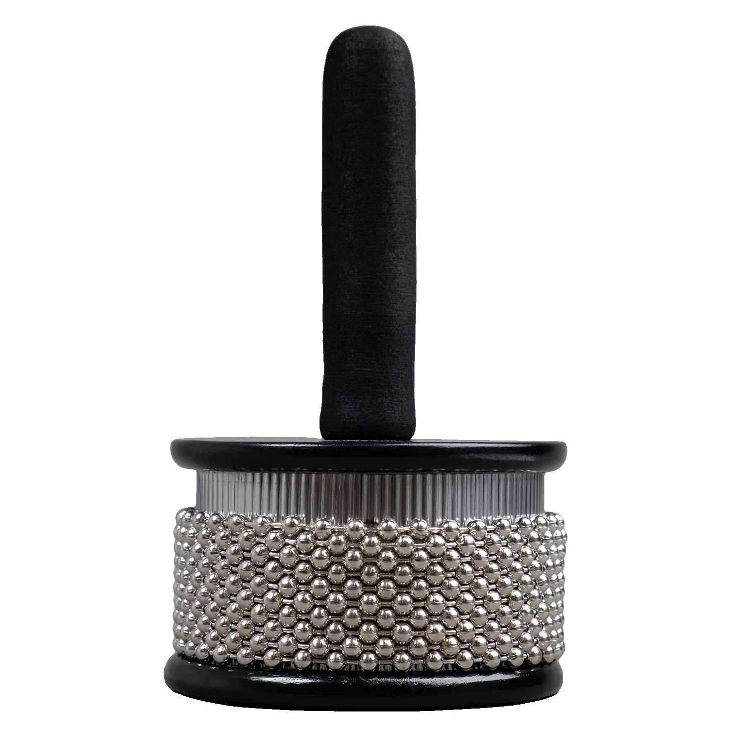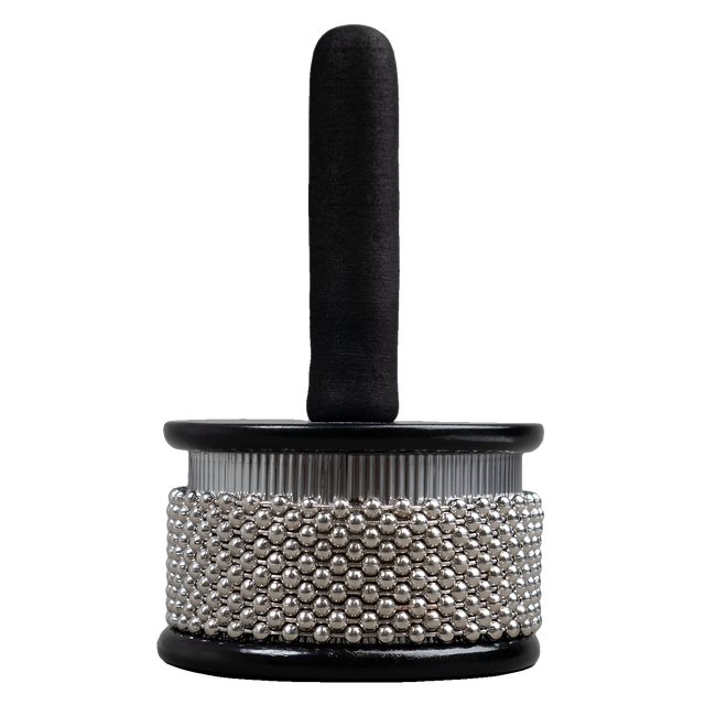 Die Cabasa ist ein faszinierendes Perkussionsinstrument, das seinen Ursprung in Lateinamerika hat. In ihrer Urform bestand die Gefäßrassel aus dem Fruchtkörper eines Flaschenkürbisses, der mit einem Netz aus Kernen oder Perlen überzogen wurde. Die Sela Cabasa setzt hingegen auf die moderne Bauform mit einem mit einem zylindrischen Kopfteil und einem umliegenden Profilblech. Dieses Blech ist wiederum mit zehn enganliegenden Metallperlenketten besetzt, die bei Bewegung über die Rillen im Blech gleiten und feinperlige, rauschende Klänge erzeugen.