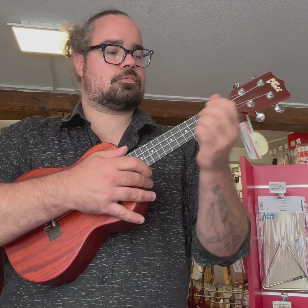 Ce ukulélé se distingue de nombreux autres modèles par son look subtil combiné au travail d'incrustation simple mais de haute qualité sur la rosace. Le ton puissant et sonore est basé sur la combinaison du plateau massif et du bois traité. Une bonne action des cordes, une mécanique stable et une intonation claire font du jeu un plaisir. Enfilé avec des cordes Aquila de haute qualité.